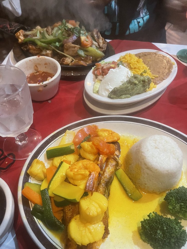 Shrimp and scallops, sauteed with onions, green pepper, tomatoes, green chili, and red pimentos.